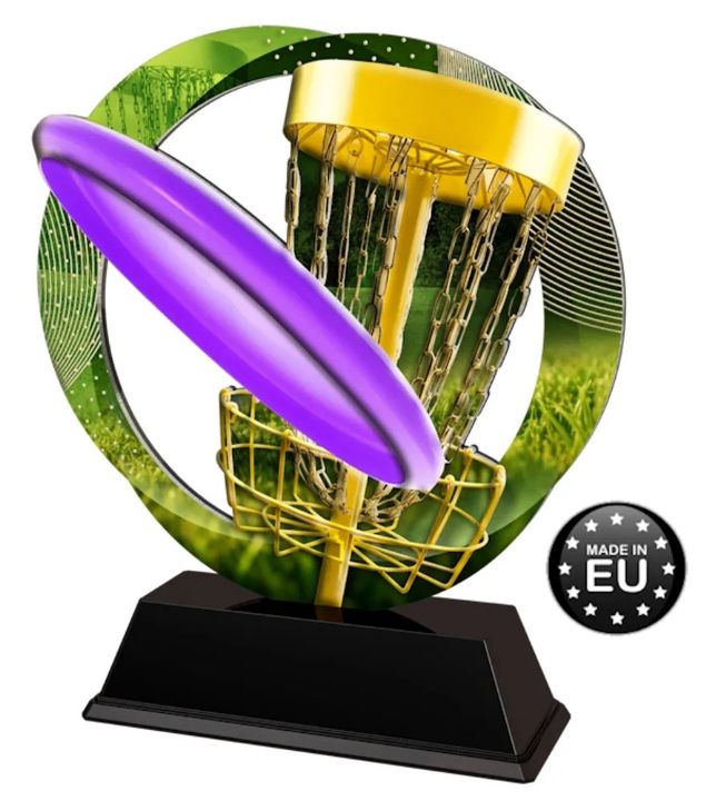 Moderne statuett i acryl og metalfyll i foten som git tyngde.